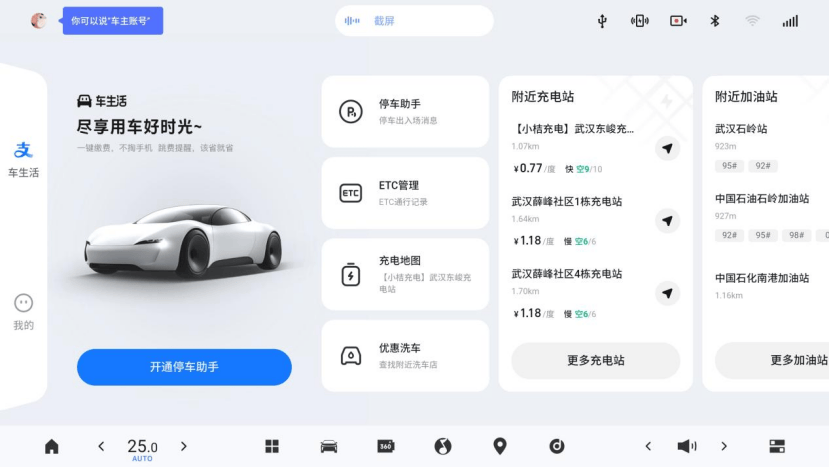东风汽车与支付宝联手打造的支付宝车生活APP,堪称车载“随身管家”,可实现停车场缴费、搜索附近停车场/加油站、优惠充电、优惠洗车等功能一键搞定,省时更省心;同时,收快递不用掏手机,车机可直接发送取件码到手机,实时查看包裹状态;最方便的是“语音预点咖啡”功能(支持星巴克和瑞幸两个品牌),早上赶时间想带咖啡,语音跟车机说“点杯瑞幸拿铁”,选好后自动扣款,到店就能取,全程不用停车、不用找手机,开车办事两不误。
