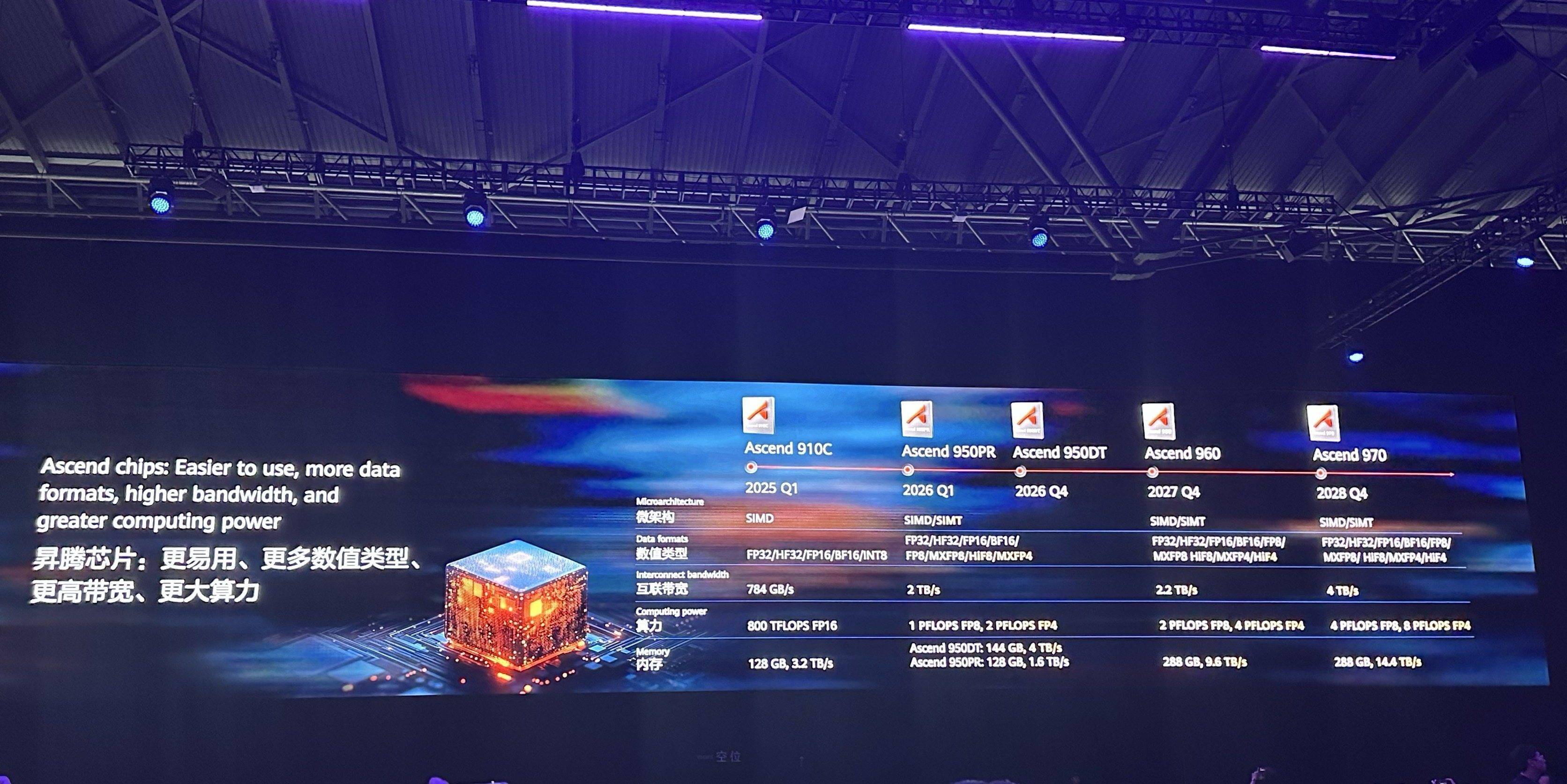 昇腾960芯片将于2027年四季度上市,昇腾970芯片则预计是2028年四季度上市。