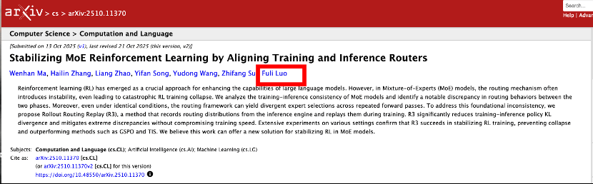 今年10月,小米AI团队携手北京大学联合发布了一篇聚焦MoE与强化学习的论文。在该论文中,此前因DeepSeek而爆火的AI人才罗福莉的姓名就在其中。